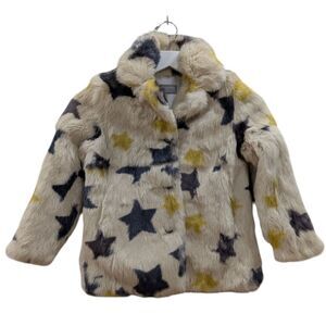 YVES SALOMON Enfant Rabbit Fur Star Pattern Coat Girl's Size 6 NWOT