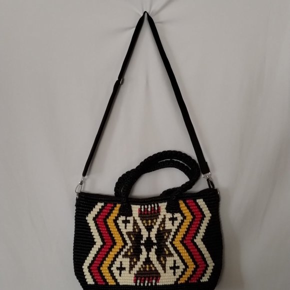 YVETTE'S LARGE STRAW BOHO SHOULDER/ HAND BAG W/ STRAP.