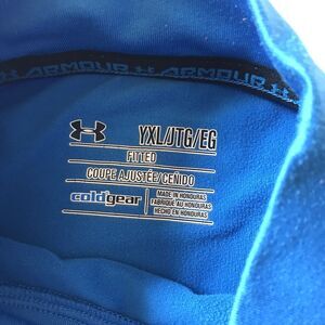 YXL Under Armour Cold Gear Fitted Shirt Mock Turtleneck Aqua Blue Black 1259678