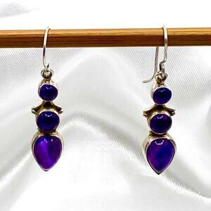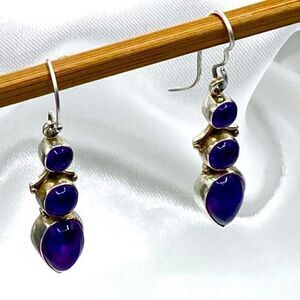 Beautiful amethyst & Sterling 925 Silver dangle earrings. We work hard to find high quality fine jewelry for our buyers. This item is sourced from an estate sale and the former owner had exquisite tastes. The great craftsmanship make this item a true work of art and with its pristine condition It is truly A great value of fine jewelry at costume pricing! Let’s make it yours!