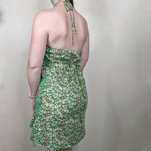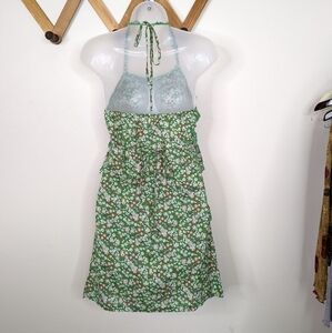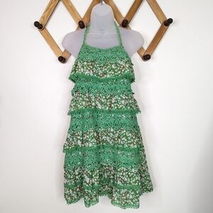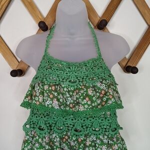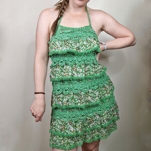 Ya Los Angeles Floral Y2K Crochet Ruffle Tiered Halter Mini Dress - excellent condition