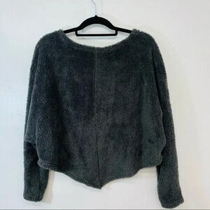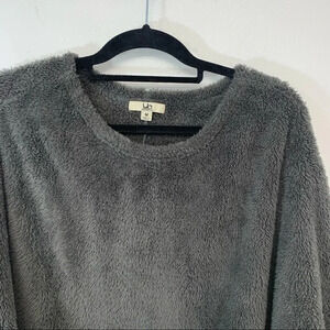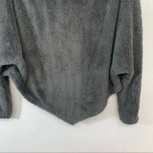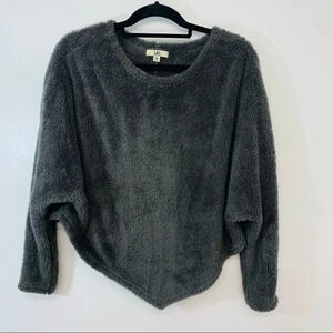 Ya LA Fuzzy Top Woman Medium Gray Long Dolman Sleeves Hi Lo Crop Long Sleeve
