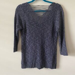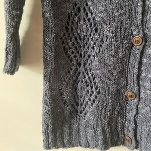Ya Los Angeles 3/4 Sleeve Button Up V neck Open Crochet Sweater Cardigan size M