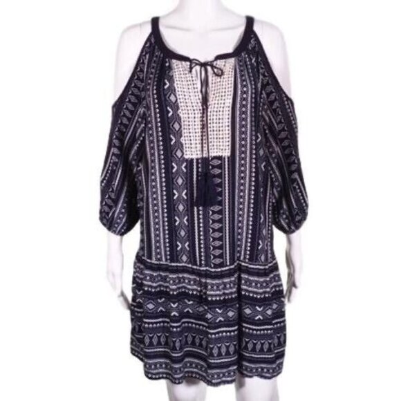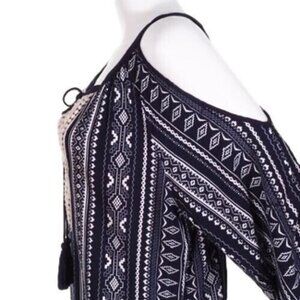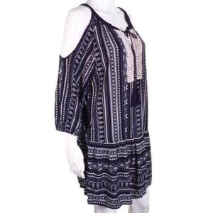 Ya Los Angeles BoHo Dress Size M Womens Cold Shoulder Blue White