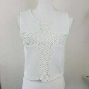 Ya Los Angeles Cropped Knit Tank Top White Small Cottage Core BOHO Bohemian