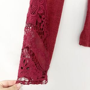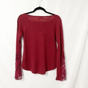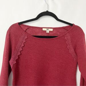 Ya Los Angeles Red Lightweight Knit Lace Accent Long Sleeve Size S