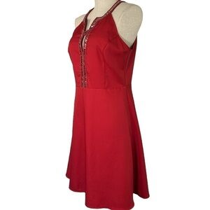 Ya Los Angeles Sequin Beaded Fit & Flare Midi Dress - Red/Silver, Size Large