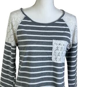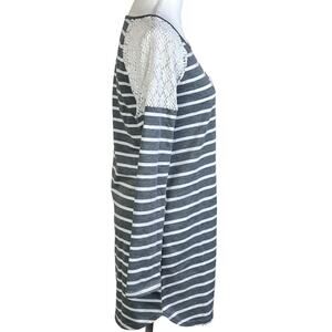 Ya Los Angeles Tunic Dress Women Medium Embroidered Gray White Striped Top
