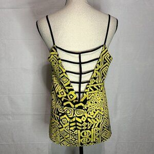Ya Los Angeles Womens Yellow Black Scoop Neck Low Back Tank Top Sz M