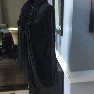 Cotton long sleeve thin cardigan. Black. Ruffle neckline. Pockets. Worn twice.