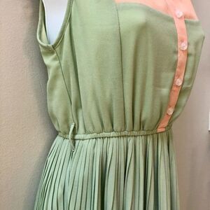 Ya Los Angeles sleeveless peach and green button pleated flare dress size S