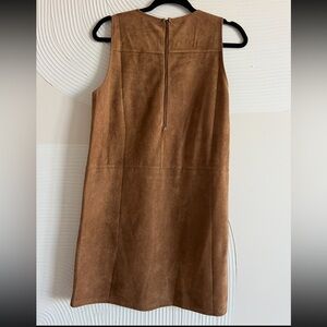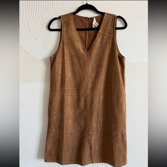 Chic brown mini dress with a V-neck design. Sleeveless and stylish. Perfect for versatile wear.