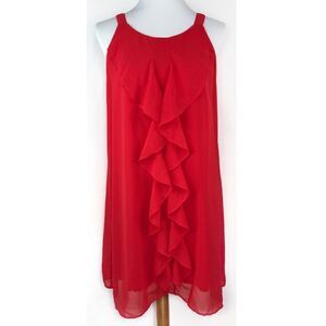Ya Los Angeles Red Ruffle Sleeveless Shift Dress Medium