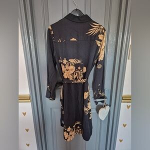 Chic long sleeve dress with gold floral design. Ideal for stylish outings.