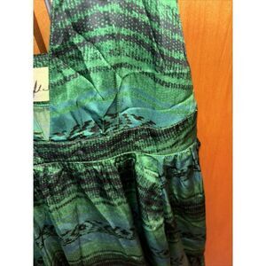 YaYa Aflalo Silk Emerald Snake Dress M Adjust Strap Pockets V Neck