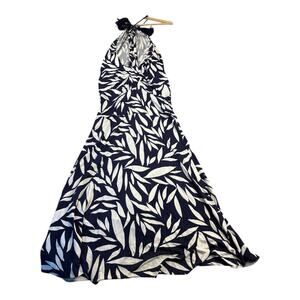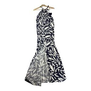 YaYa & Co Women's Open- Back Halter Maxi Dress Mermaid Style Sz Small Navy/White