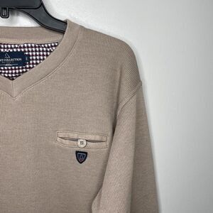 Yacht Collection by Wins Sweatshirt Mens XL Tan Pocket Pullover V-Neck Logo