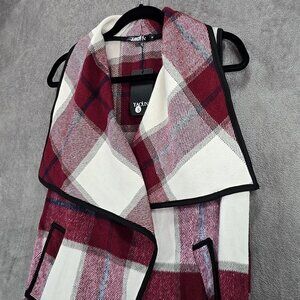 Yacun Vest Lapel Open Front Buffalo Plaid Sleeveless Cardigan Jacket Women Small