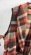 Stylish plaid sleeveless vest with a draped front. Features a mix of Orange Brown Black Tan colors.