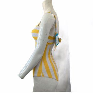 Yaffi Womens Yellow and White Striped One Piece Swimsuit Size Small