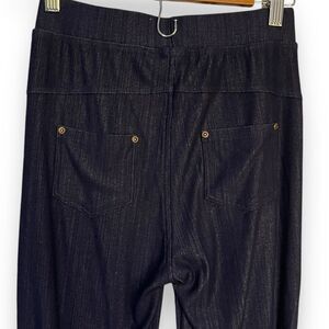 Dark blue jegging pants. These are one size, so please refer to the measurements to ensure fit. Great overall condition. No rips or stains. Minimal signs of wear.
