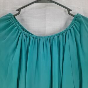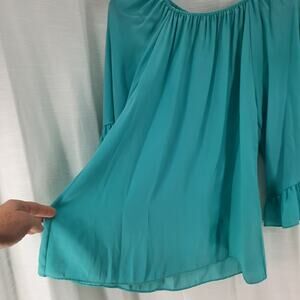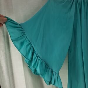 Yahada USA teal green flowy top. 3/4 length bell sleeves with ruffle at end. Loose elastic at neckline.