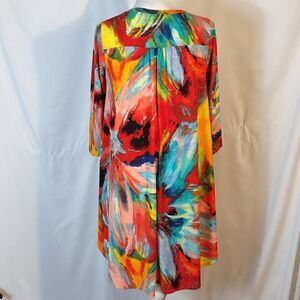 This very colorful 3/4 sleeve Yahada high low tunic is a size Medium with a pit to pit measuring 21". 92% polyester 8% spandex and hand washable. Pre-owned and in like new condition. All offers are welcome.