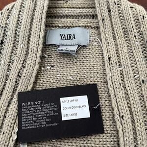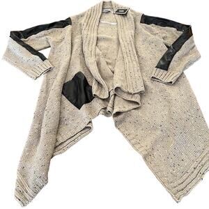 Yaira Taupe Flecked Cardigan Sweater with Black Faux Leather Accents Size Large