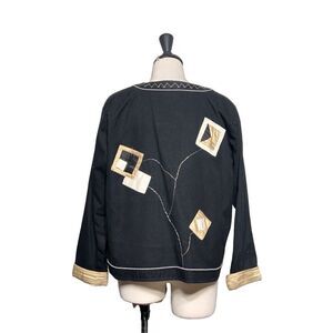 Yak Magik Beaded Appliquéd Jacket Black & Tan Size M