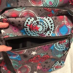 Excellent condition- 2 large zippered sections and two smaller zipped sections, two mesh side pockets