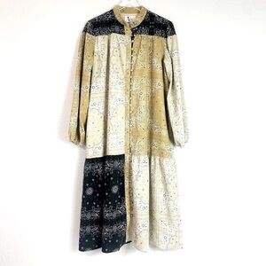 Yal New York Camel Patchwork Bandanna Print Shirt Dress Size L