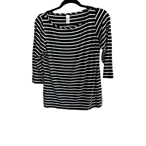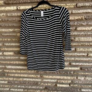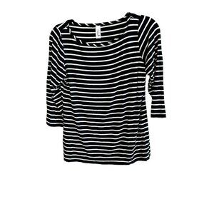 Yala Black and white Striped Casual Round Neck Top 3/4 Sleeves Size Large