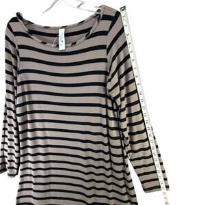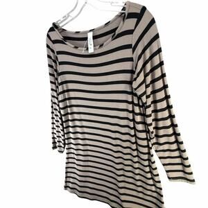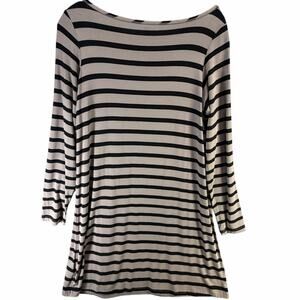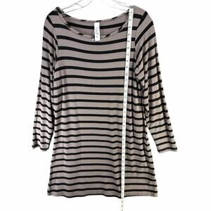 Yala T-Shirt Dress Womens M Beige Black Striped Bamboo Viscose Soft Comfort