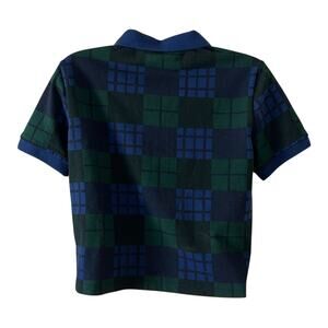 Navy Blue and green plaid knit polo shirt, cropped, boxy, short sleeve, collared