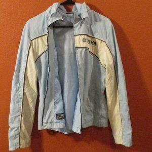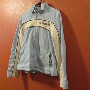 Yamaha Woman Large Light Blue White Black Full Zip Pockets Hooded Riding Jacket