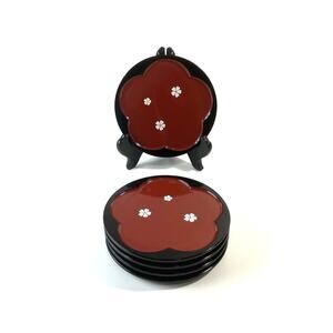 Yamanaka Lacquerware Deserts Plate Set of 5 Plum Black Floral Japan