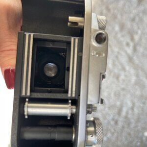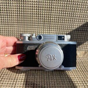 Pax M-2, a cute compact vintage rangefinder camera. I am not tested it with film. Some of the dials around the lens seem to move, I don't have enough knowledge to know what parts need testing or not. If you have questions or need more photos, please let me know!