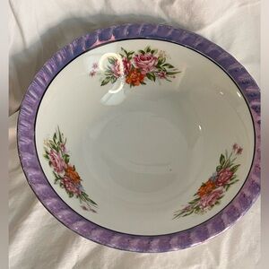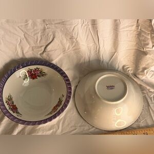 Yamatsu Japan Lusterware Set of 2 Bowls Flower Design Purple Blue Fluted Rim VTG