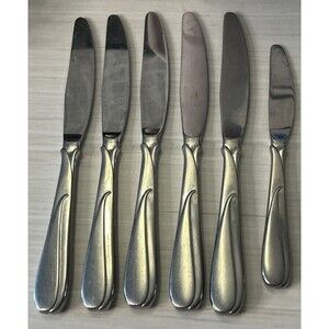 The Yamazaki FLORIAN Knives are a set of 5 dinner knives and 1 butter knife, all crafted from high-quality stainless steel. Made in Japan, these silver knives feature sleek stainless steel handles, matching the blades. Perfect for everyday use or as a collectible item, these knives are a stylish and durable addition to any kitchen or dining room.