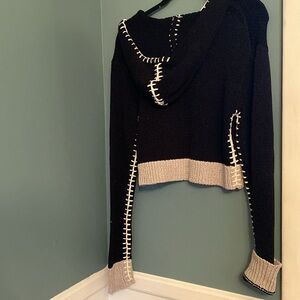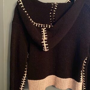 Yan yan knits - women’s small - long sleeve be hooded sweater - black/white