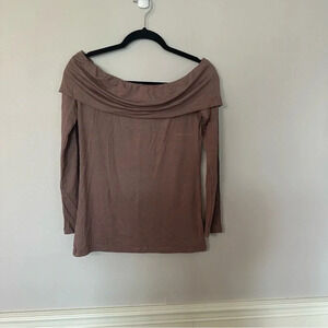 Yana K Cindy Top Long Sleeve Rayon Draped Neck Off Shoulder in Coco One Size NWT