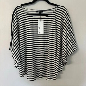 Yana K Women's Tania Top in Black & Ivory Stripes Short Sleeves One Size NWT