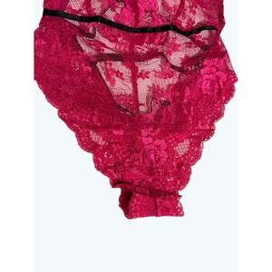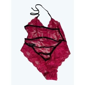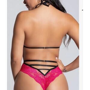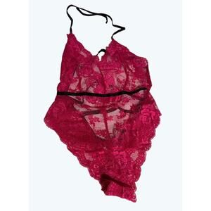 Stunning teddy featuring sheer lace soft cups, halter straps, a scalloped lace trim, a sheer lace bodice, a seamed waistline, a strappy back with hook closures, and a cheeky cut back Refer to the size chart for an accurate fit. We recommend choosing a bigger size for better comfort and coverage. Elegant and sweet with a touch of sexy, you will be pleased with high quality material, a great fit, and comfort.