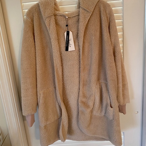 Beautiful blush colored teddy jacket with hood. Super soft and comfy - make a great indoor or outdoor jacket. New with tags.