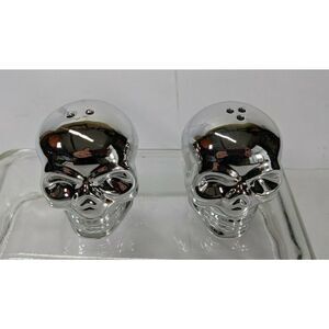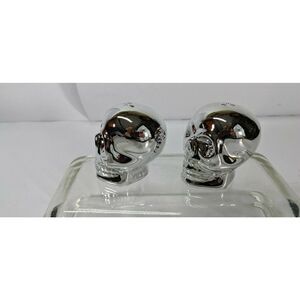 Yankee Candle Halloween 2021 Skull Salt and Pepper Shaker, New in box. Silver chrome mirror No Chips or Cracks.