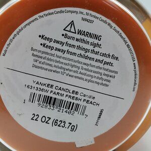 Indulge in the comforting aroma of farm-fresh peach with this 22 oz Yankee Candle. Inspired by the essence of a woodland road trip, this candle fills your space with a delightful, homey scent. The sturdy glass jar comes with a silver lid, making it both a functional and stylish addition to your home decor.