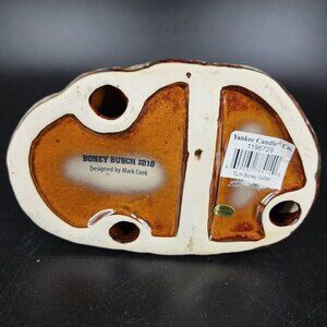 Bottom markings: "Boney Bunch 2010 Designed by Mark Cook" and original Yankee Candle Co. barcode sticker (1196729, TL/H Boney Golfer). Small sticker notes Made in China.