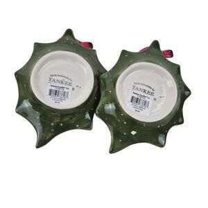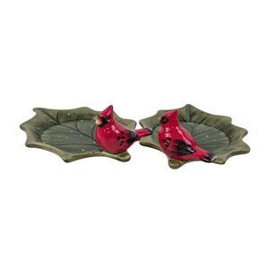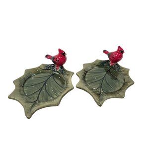 Yankee Candle Cardinal Leaf Dishes Lot 2 Holiday Red Bird Green Tray Ceramic