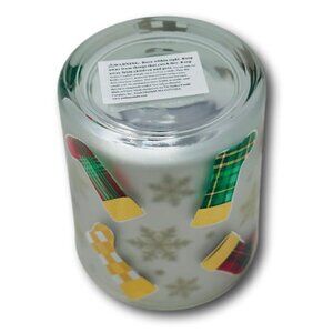 As the holidays draw near, deck the halls with a classic accent. This frosted glass holder features colorful holiday stockings that flicker and glow with the light of your favorite festive Votive or Scented Tea Light Candle.
