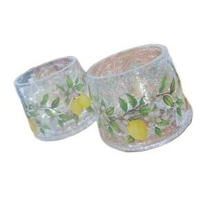 Yankee Candle Clear Crackle Glass Holder – Lemon Floral Design Set of TWO